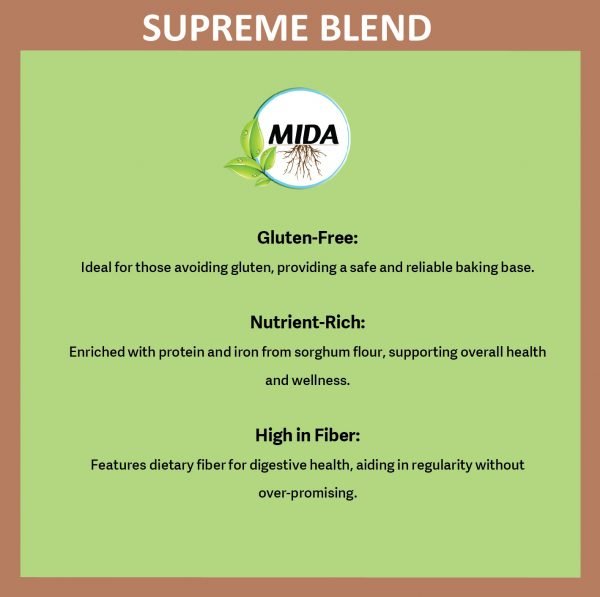 Our premium blend is designed to seamlessly substitute for regular flour in any recipe, allowing you to enjoy your favorite baked goods with confidence. The rich, brown color and natural flavor enhance both sweet and savory dishes, adding a touch of depth to your culinary creations. Experience the difference of MIDA Gluten-Free All-Purpose Brown Supreme Flour Blend and elevate your baking with a blend that is both functional and flavorful.
